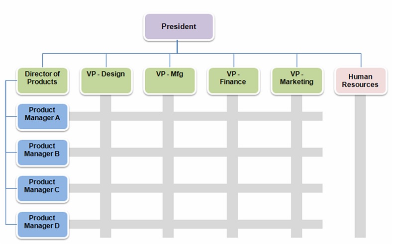 . The matrix structure works on the strength of each (functional and product/service departmentalization) while avoiding its the weaknesses. On the other hand, it breaks the "unity of command" concept with the dual responsibilities, such as sharing staff, reporting to more than one boss/manager, eg their functional department managers and product/service/program managers.