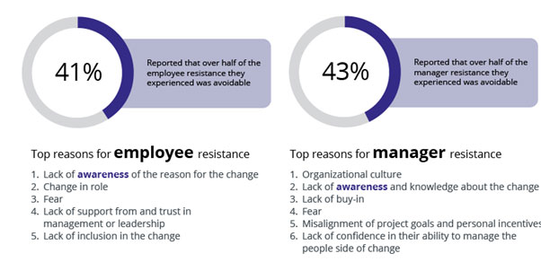 Once resistance is established, it can be very hard to mitigate. Therefore, being proactive and preventing or mitigate resistance by building change readiness from the start of the project is critical.