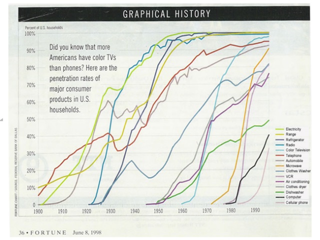 The diagram below illustrates the S-curve concept for a range of products, such as TVs, videos, refrigerators, computers, cars, micro-wave ovens, etc. It is of interest to note that, over time, the S-curve has become steeper!!!!