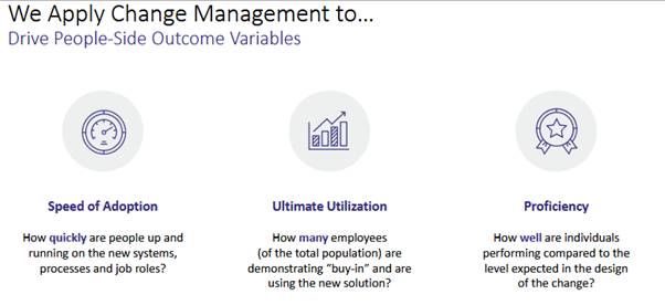 - reduce costs and risks for adoption like resistance, attrition, conflict and frustration